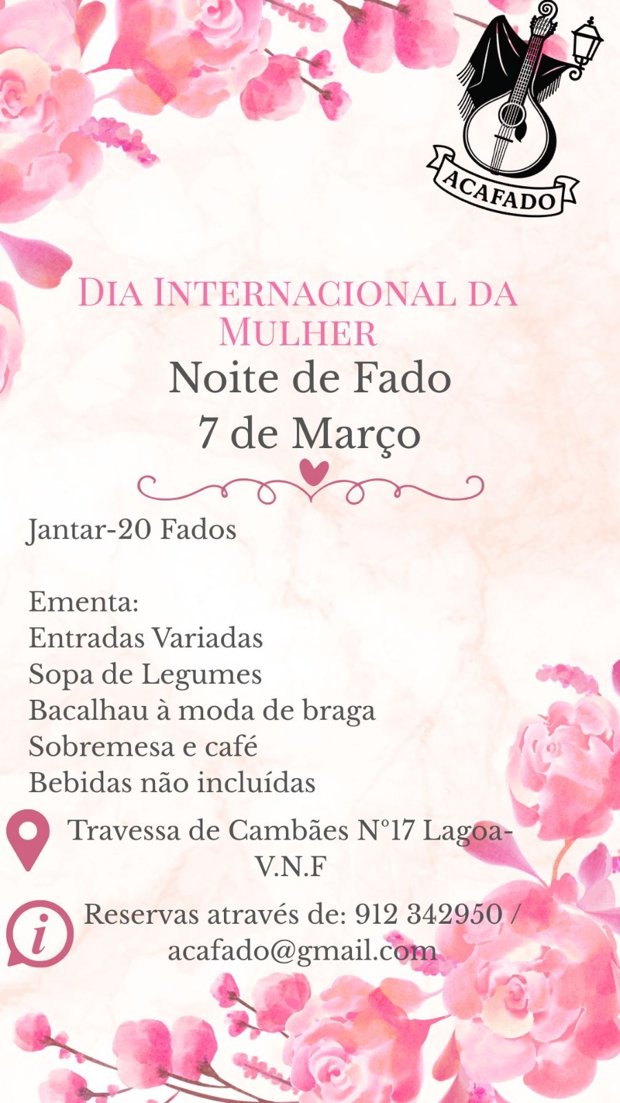 Noite de Fado – Dia Internacional da Mulher – 07-03-2026